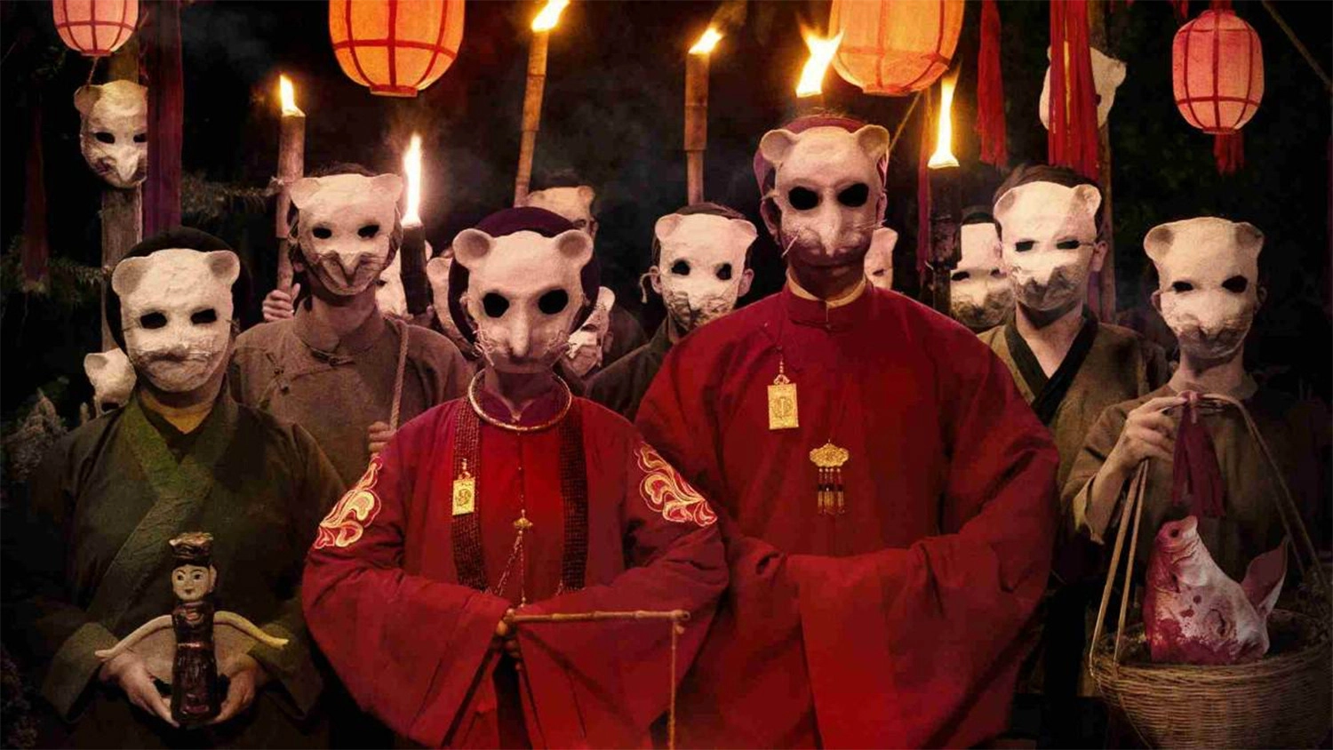 Yếu tố phục trang gây ấn tượng mạnh ngay từ đầu phim trong phân cảnh đám cưới chuột. Đoàn người trong đám rước mặc cổ phục Việt, trong đó cô dâu và chú rể nổi bật với trang phục đỏ có các chi tiết áo ngũ thân, đối khâm, giao lĩnh. Hình ảnh đoàn người đeo mặt nạ chuột gợi nhớ bức tranh Đám cưới chuột hay thấy trong tranh dân gian Đông Hồ. Yếu tố văn hóa dân gian còn được thể hiện ở hình ảnh lễ vật chiếc đầu heo trong đám cưới, hay con rối nằm cạnh các thi thể.