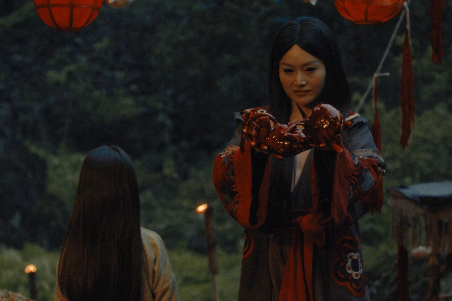 Nhà làm phim đầu tư vào yếu tố phục trang, trong đó có cảnh đám cưới đầu phim. Cảnh quay gây ấn tượng với tông đỏ chủ đạo, cài cắm nhiều chi tiết về văn hóa dân gian. Đoàn người trong đám rước diện cổ phục với áo ngũ thân, đối khâm, giao lĩnh. Các nhân vật đeo mặt nạ giấy hình chuột – một tập tục trong làng để “tránh bị đom đóm câu hồn”.
